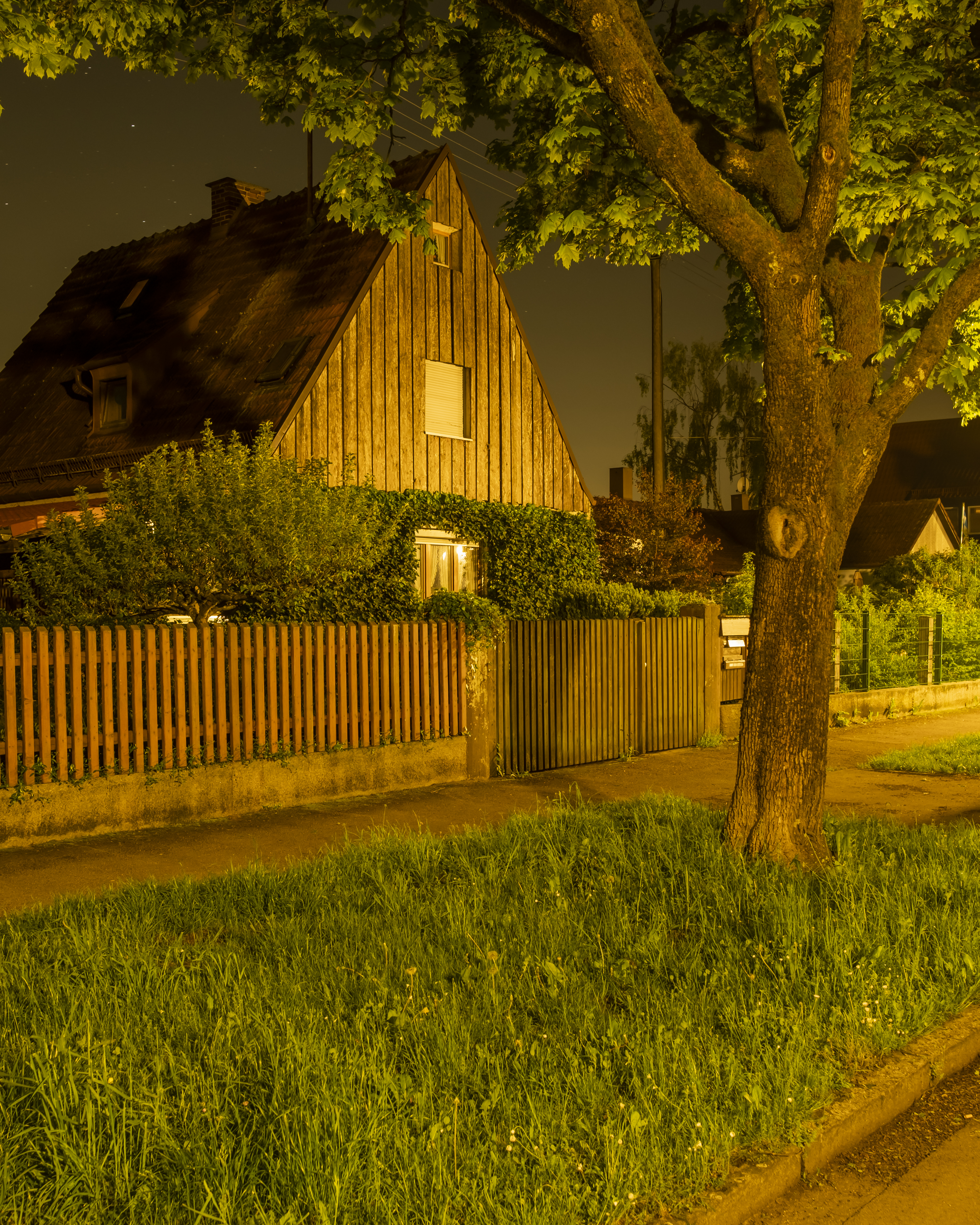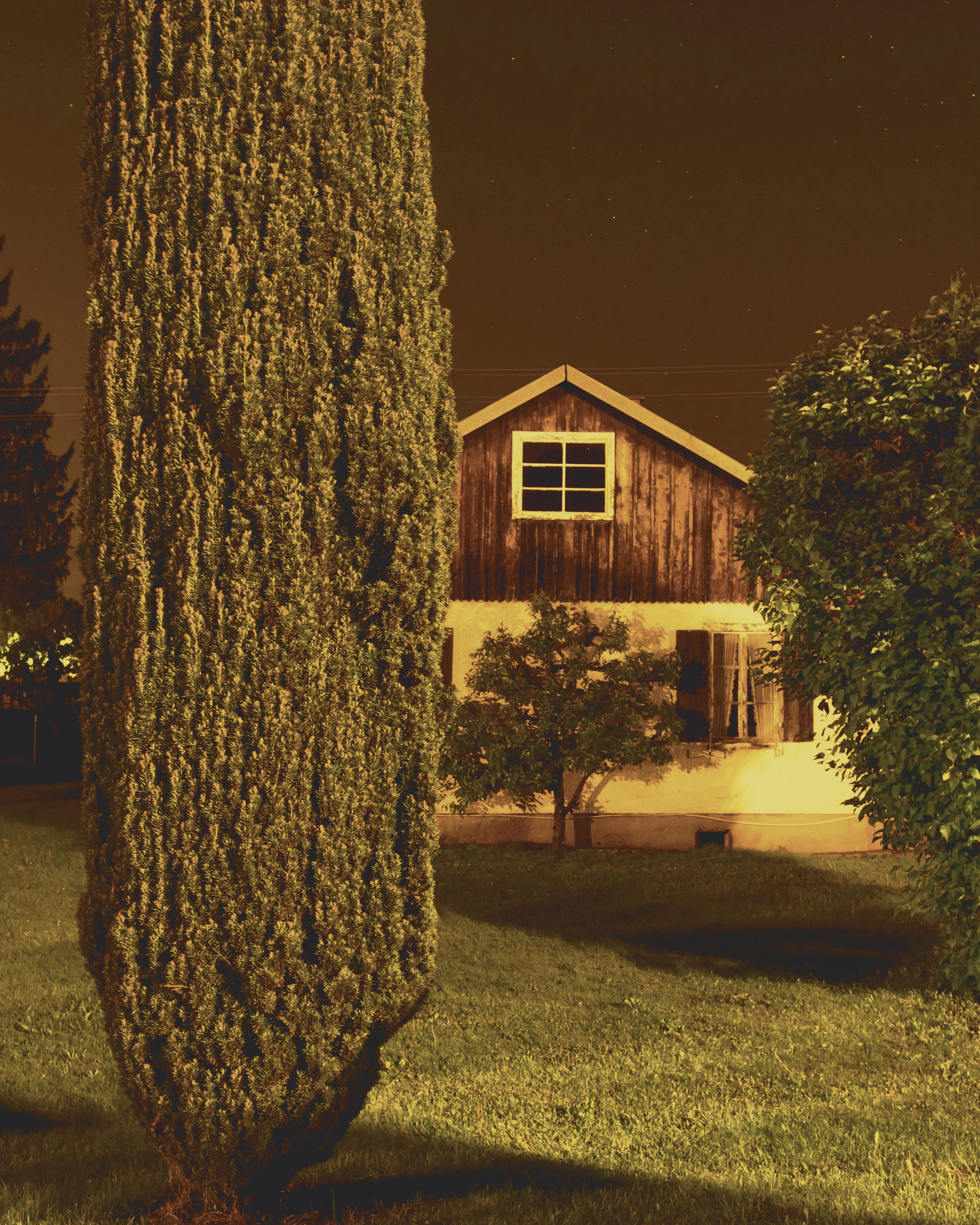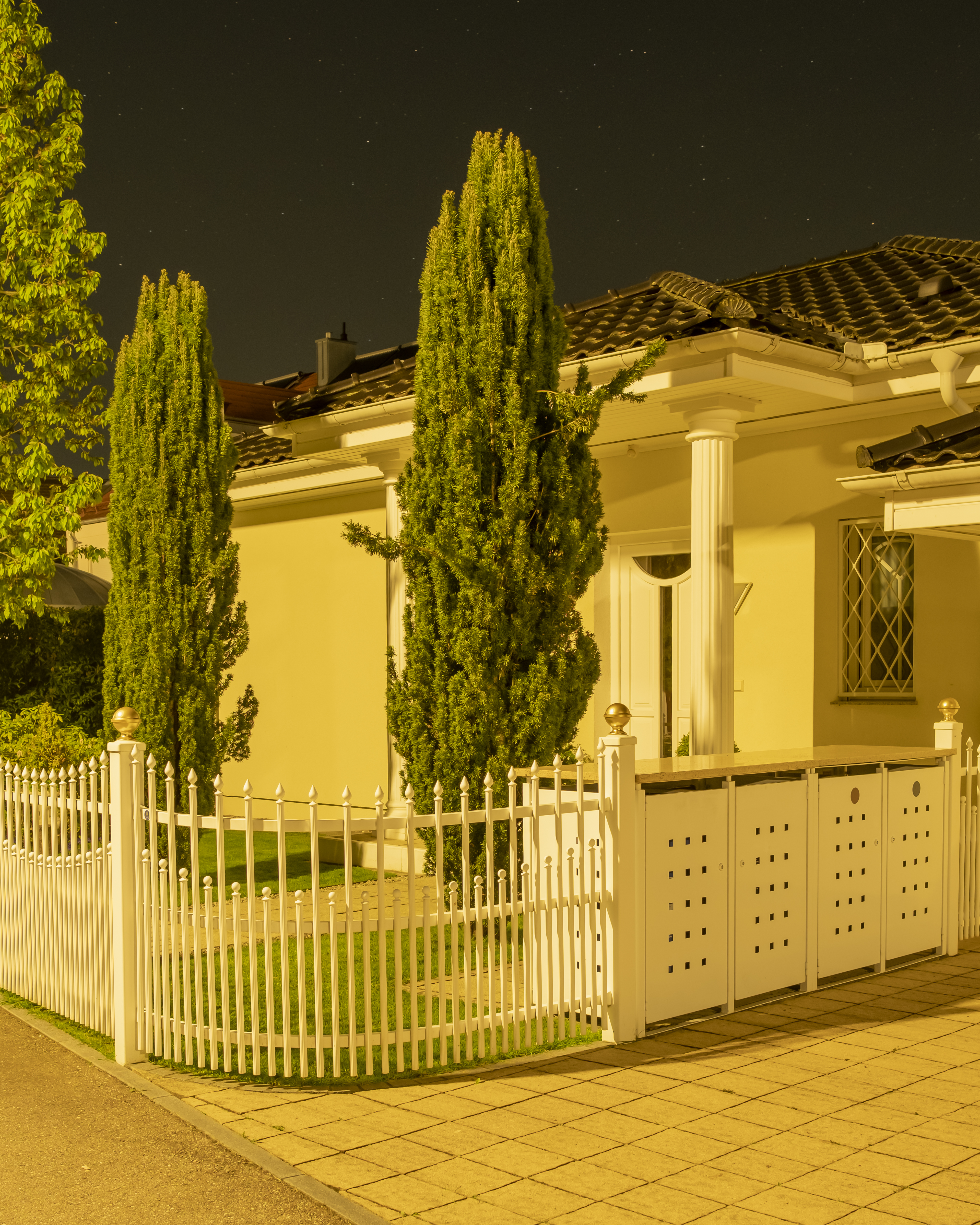 growing up in the outskirts of munich, residential architecture played a major role for me when growing up. Fascinated by the way family homes are all so similar and different at the same time, suburbanite is a celebration of the beauty of the german suburbia. Endless stretches of thuia hedges line up next to a variety of picket fences. It seems that the architecture of these vernacular places wants to stay hidden behind a wall of privacy. One can only guess what is going on inside of these homes. Only at nighttime when everybody else seems to be asleep, the sleeping town comes alive. Illuminated by the headlights of cars and the sodium vapour street lights, the landscape transforms into an eerie and liminal place. „Surburbanite“ tries to capture the feeling a strolling through a seemingly empty town, abandoned by their inhabitants . The viewer becomes the „suburbanite“ (eng. „a person inhabiting the suburbs“).